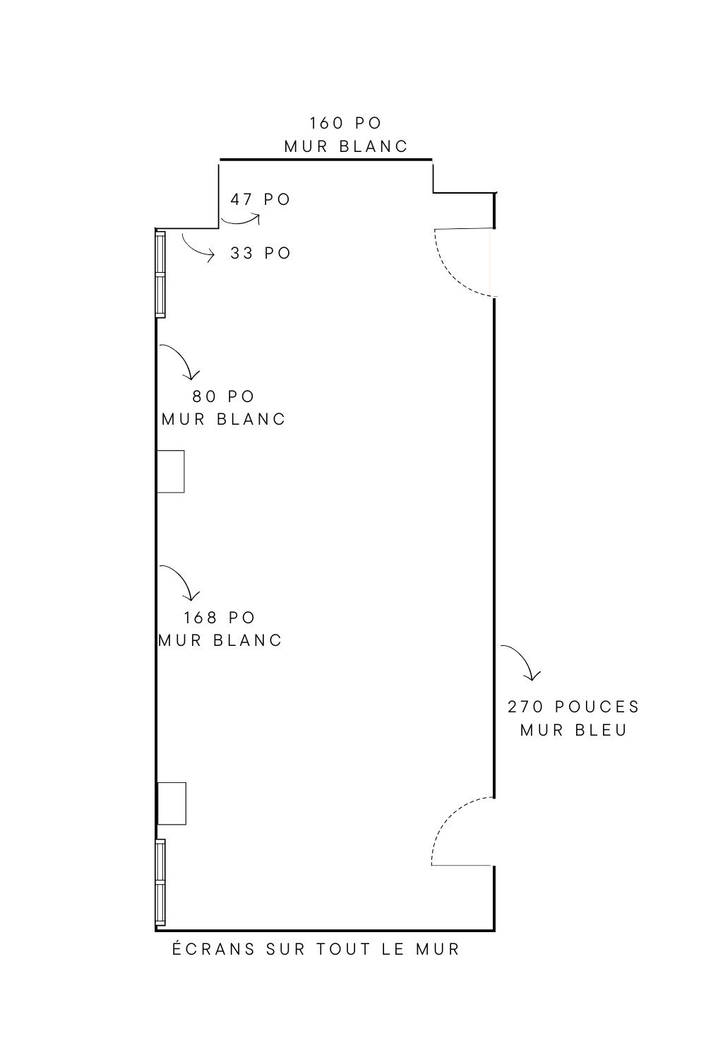 - En termes d'éclairage et de climatisation la salle n’est pas équipée de façon professionnelle, mais est munie d’un système d’accrochage sur rail.